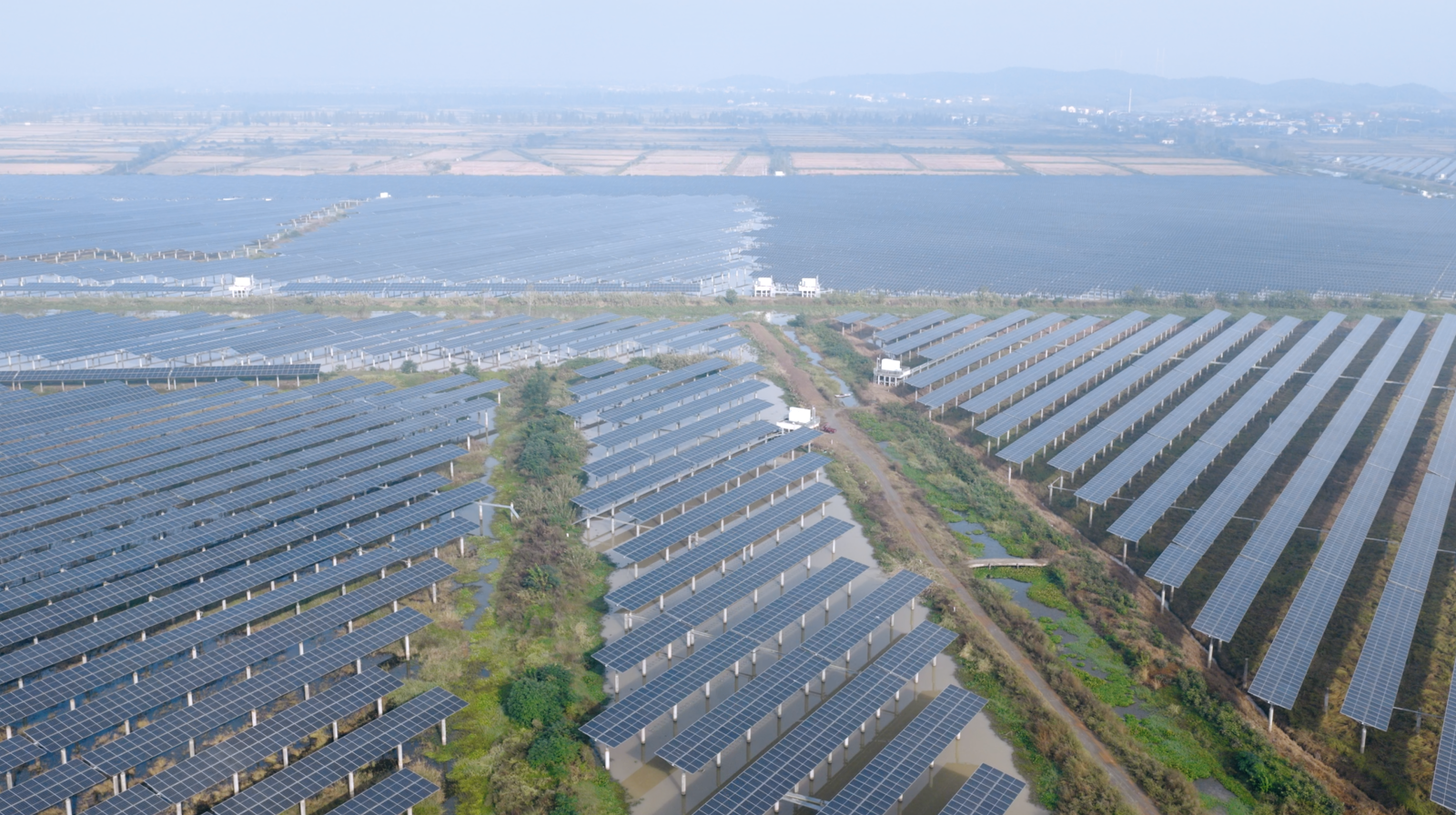 •Project Background: Located in the vast water areas of Hubei Province, this project is currently the largest fishery–PV photovoltaic power plant in Hubei Province and a key demonstration project promoting the integrated development of ecological protection and clean energy in the Yangtze River Basin. The project adopts an integrated model of “PV + water system management + ecological aquaculture”, aiming to achieve the coordinated development of efficient three-dimensional utilization of water resources, regional ecological improvement, and large-scale green power generation.