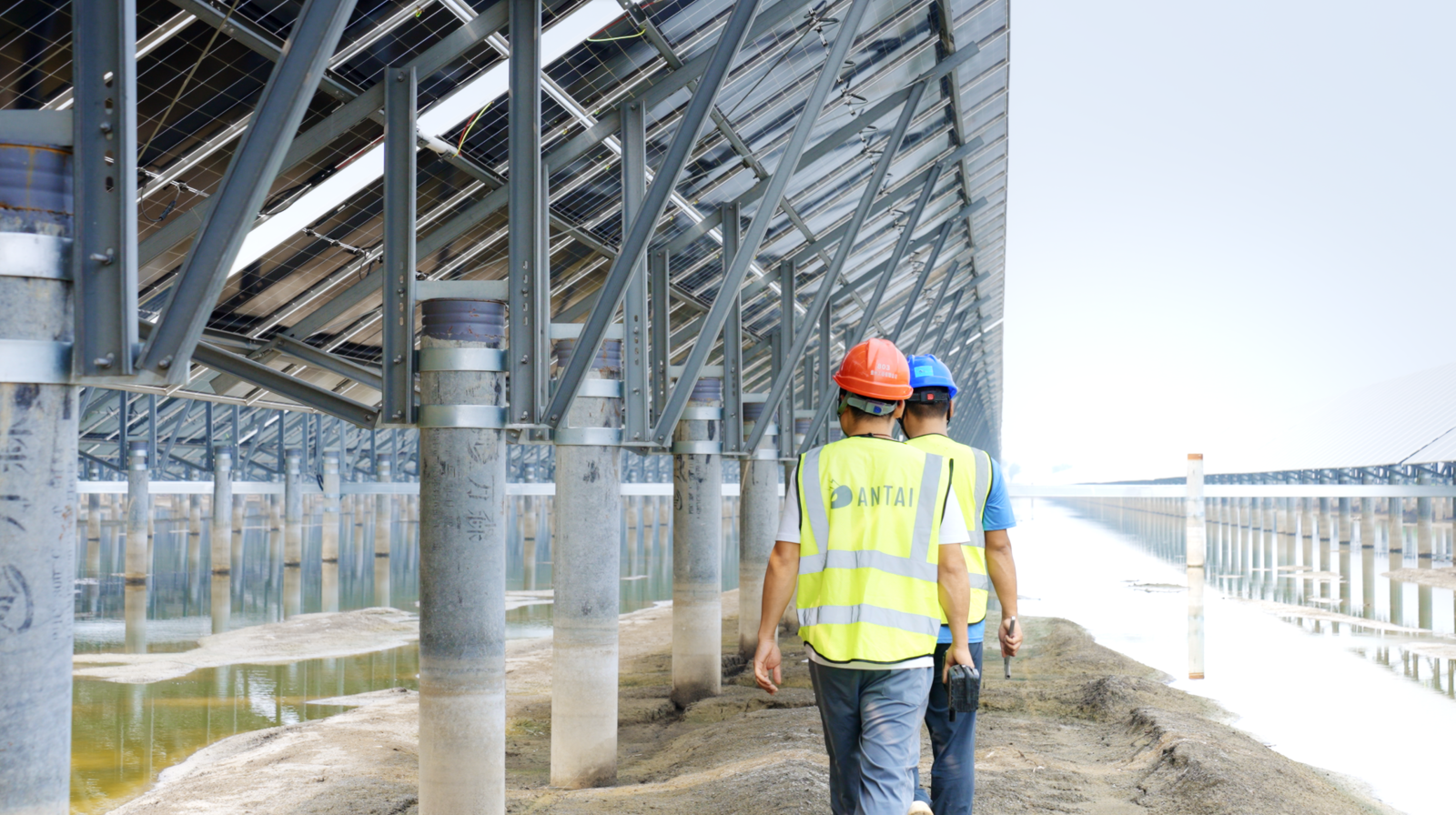 •Project Requirements: All project sites are located in coastal tidal-flat zones. The core requirement was to construct large-scale photovoltaic power plants capable of safe and stable operation for more than 25 years under extremely humid and highly saline corrosive conditions. The solution needed to simultaneously address three key objectives: 1) Structural Reliability: Withstand strong coastal winds and soft soil foundations; 2) Ecological Compatibility: Achieve true complementarity between PV generation and aquaculture in terms of light access, spatial layout, and operational activities, rather than mutual interference; 3) Investment Efficiency: Deliver a total capacity of 400MW with high quality and efficiency within the grid-connection window, while controlling full life-cycle costs.